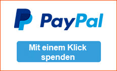 Sie haben die Möglichkeit, uns jetzt und hier mit einer Spende zu unterstützen! Wenn Sie auf den Button „Mit einem Klick spenden“ gehen, können Sie uns unmittelbar über ein PayPal Konto oder auch Ihrer Kreditkarte eine Spende zu Gute kommen lassen! Sie können dabei auch automatisch Ihre Spende auf „monatlich“ umstellen.